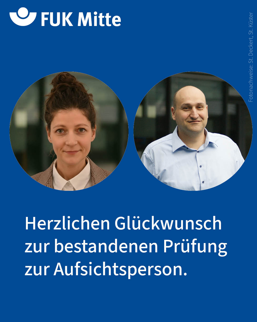 Wir freuen uns sehr, dass Henriette Karsten und Stephan Deckert nun als feste Mitglieder unseres Teams die Arbeit der FUK Mitte bereichern – mit hoher fachlicher Kompetenz, großem Engagement und einem klaren Fokus auf Sicherheit und Gesundheit.